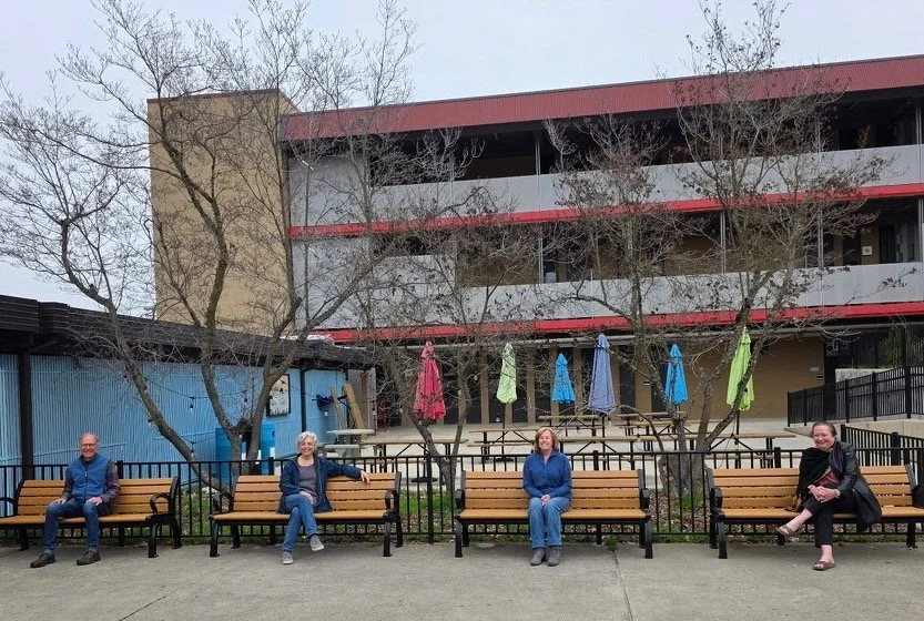 In 2025 the Class of 1975 celebrated their 50th year reunion in great Grizzly spirit! Following the renovation of their favorite class hangout The Quad, and working with Ashland High School and the Ashland Schools Foundation (see below), '75 alums have donated four class memorial benches. A plaque with the quote "Start where you are, use what you have, do what you can" from Arthur Ashe will also be installed nearby. Left to Right are reunion organizers: Rick Saul, Karen Colombo, Rhonda Collins (Cullop), Susan Jain (MacCracken). Additional support for the project provided by Student Body president Eric Olcott and Class of '75 President Tim Leybold.